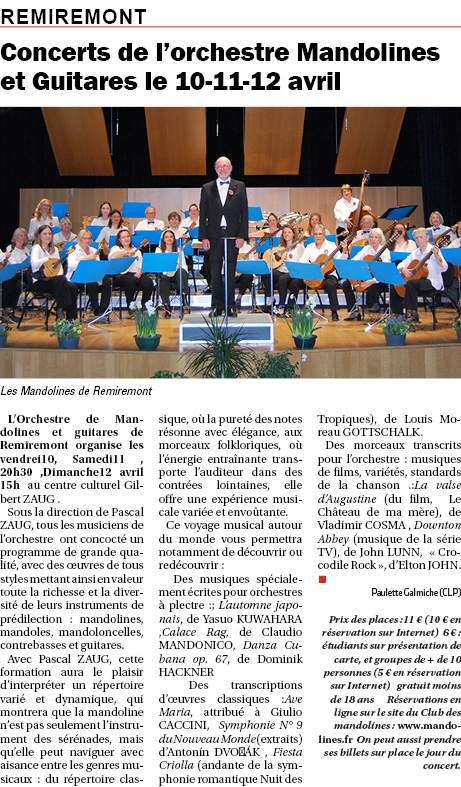 | Publication L’Écho des Vosges (après concert) | << CLIQUER ICI >> |